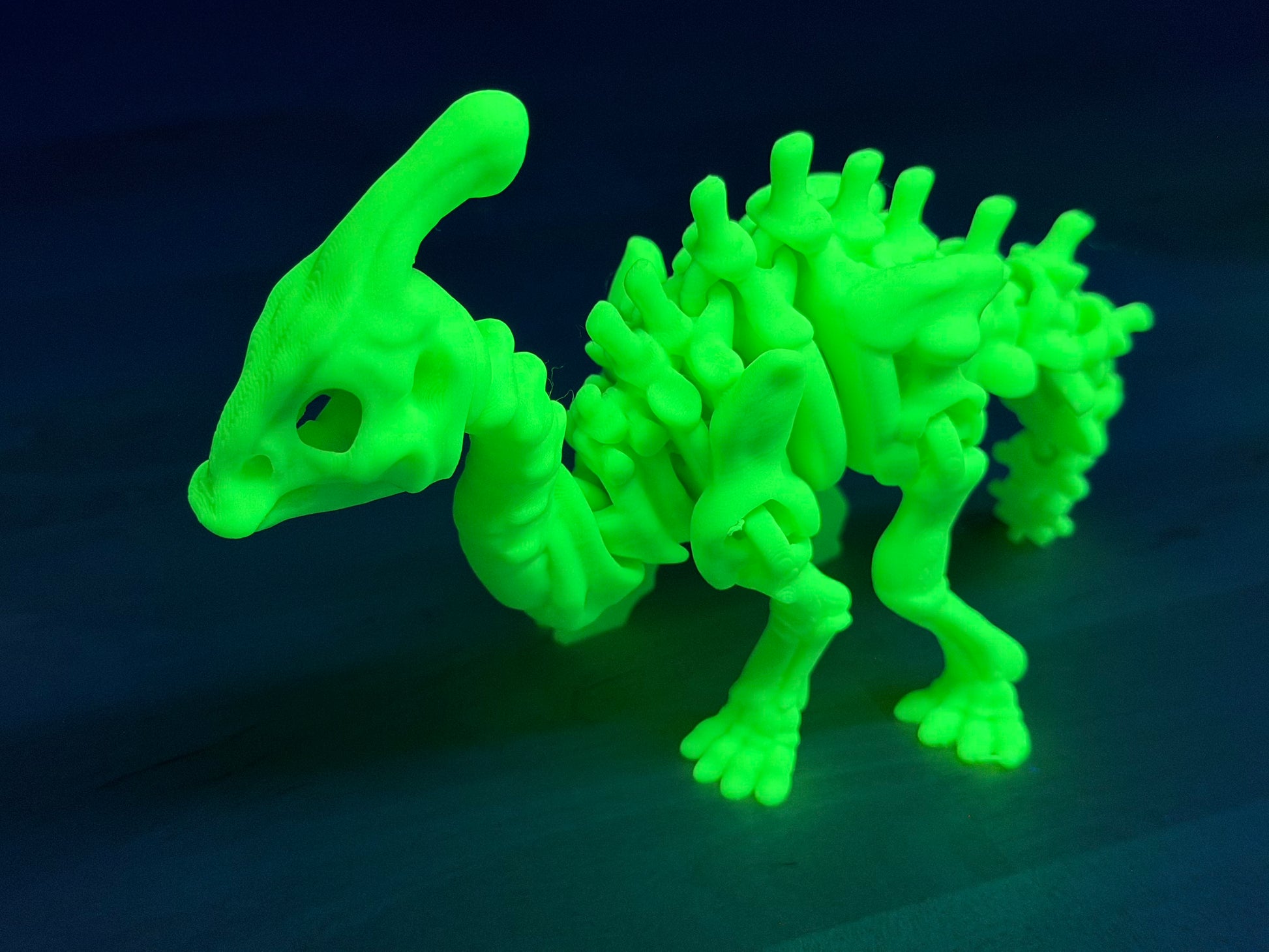 Meet the GLO-Dino FULL SET of all Dinosaurs. To include the Triceratops, T-Rex, Parasaurolophus, Ankylosaurus, Stegosaurus, and Velociraptor — BearFaceRhino’s glow-in-the-dark prehistoric legend! 🦖 3D-printed with precision and attitude, this poseable mini dino brings Jurassic energy to any desk, shelf, or nightstand. Available in Blue, Pink, Green, and Yellow, each one charges under light and glows brilliantly in the dark. Whether you’re a collector, a kid at heart, or just love things that light up, GLO-Dinos are ready to stomp, shine, and steal the show.